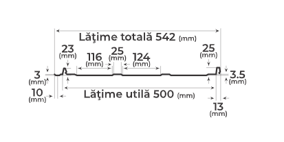 | Material | Tablă din oțel, zincată pe ambele părți protejată cu poliester |