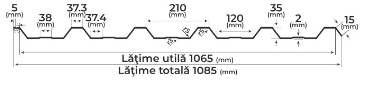 | Grosime nominală | 0,4 – 0,7 mm tablă din oțel |